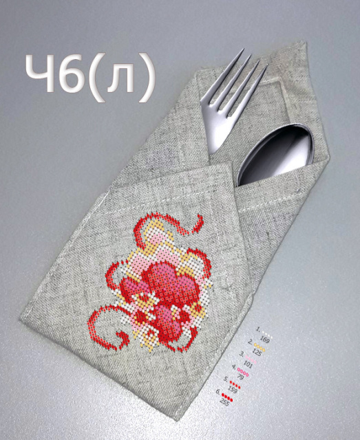Пошитий чохол для сервірування столових приладів. Область вишивки проклеєна флізеліном. Тканина - домоткане сіре (50% бавовни) Розміри готового виробу: Висота - 25 см Ширина - 11 см Є можливість сервіровки у такому чохлі до чотирьох предметів. У набір входить: - малюнок (бісерна схема) - надрукована на водорозчинному флізелін; - готовий виріб - чохол. Спосіб застосування: виріжте фрагмент і приметайте до виробу ниткою; вышийте бісером або ниткою; після вишивки замочіть виріб у теплу воду.