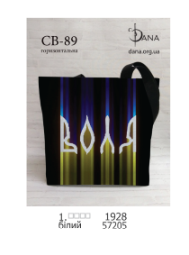 Пошита сумочка Характеристика виробу: -розмір виробу: ширина -36 см, висота — 35 см. Ширина дна сумки: 6 см -ручки виготовлені з ремінної стрічки, повна довжина ручки — 60 см — (2 шт) - є підкладка всередині - сумка пошита на одне відділення та кишеня всередині - вшита блискавка (застібка) - тканина-габардин (підклеєна флізеліном) або оксфорд (палаткова, водовідштовхувальна) - макет малюнка розміщений на одній стороні сумочки - якісне пошиття