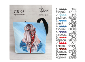 Пошита сумочка Характеристика виробу: -розмір виробу: ширина - 36 см, висота — 35 см. Ширина дна сумки: 6 см -ручки виготовлені з ремінної стрічки, повна довжина ручки — 60 см — (2 шт) - є підкладка всередині - сумка пошита на одне відділення та кишеня всередині - вшита блискавка (застібка) - тканина-габардин (підклеєна флізеліном) або оксфорд (палаткова, водовідштовхувальна) - макет малюнка розміщений на одній стороні сумочки - якісне пошиття