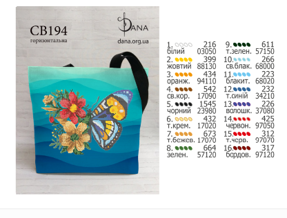 Пошита сумочка Характеристика виробу: -розмір виробу: ширина - 36 см, висота — 35 см. Ширина дна сумки: 6 см -ручки виготовлені з ремінної стрічки, повна довжина ручки — 60 см — (2 шт) - є підкладка всередині - сумка пошита на одне відділення та кишеня всередині - вшита блискавка (застібка) - тканина-габардин (підклеєна флізеліном) або оксфорд (палаткова, водовідштовхувальна) - макет малюнка розміщений на одній стороні сумочки - якісне пошиття
