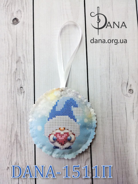 Пошита ялинкова прикраса під вишивку бісером *Тканина габардин *Прикраса обробленна фігурними ножицями *Наповнювач холофайбер *Схема нанесена на обидві сторони прикраси Діаметр іграшки 9 см.
