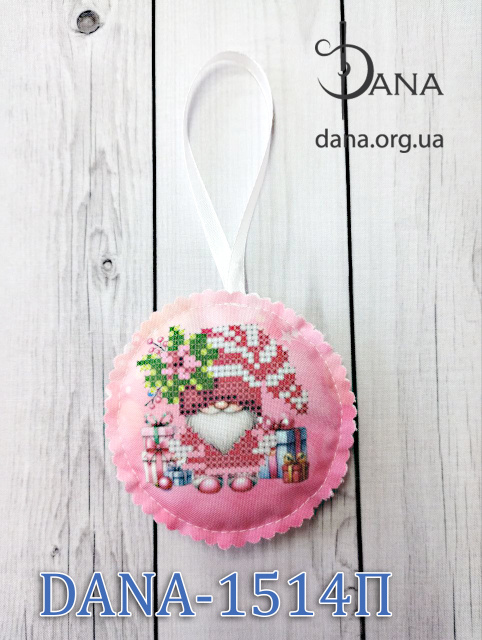 Пошита ялинкова прикраса під вишивку бісером *Тканина габардин *Прикраса обробленна фігурними ножицями *Наповнювач холофайбер *Схема нанесена на обидві сторони прикраси Діаметр іграшки 9 см.