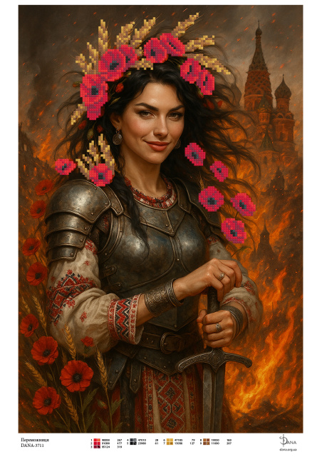 Технічні характеристики: тканина габардин два шари флізеліну термообрізка по периметру індивідуальна упаковка розрахунок бісеру в штуках рекомендована карта кольорів для бісеру Preciosa 10 виробник DANA Вартість вказана без комплектації бісеру