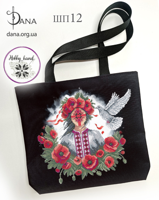Пошита сумочка Характеристика виробу: -розмір виробу: ширина - 33 см, висота — 36 см. Ширина дна сумки: 6 см -ручки виготовлені з ремінної стрічки, повна довжина ручки — 60 см — (2 шт) - є підкладка всередині - сумка пошита на одне відділення та кишеня всередині - вшита МОЛНІЯ (застібка) - тканина-габардин (підклеєна флізеліном) або оксфорд (палаткова, водовідштовхувальна) - макет малюнка розміщений на одній стороні сумочки - якісне пошиття