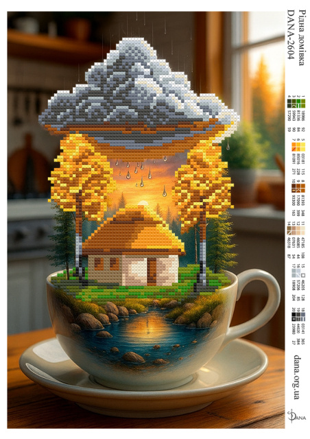 Технічні характеристики: тканина габардин два шари флізеліну термообрізка по периметру індивідуальна упаковка розрахунок бісеру в штуках рекомендована карта кольорів для бісеру Preciosa 10 виробник DANA Вартість вказана без комплектації бісеру